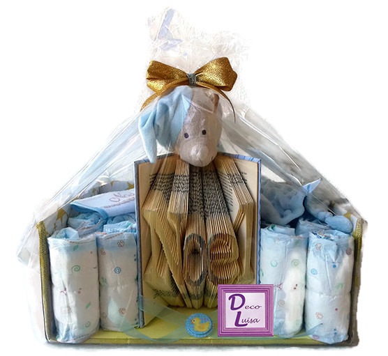 Como novedad os presentamos nuestras exclusivas tartas de pañales, todas ellas llevan uno de nuestros libros con la inicial o el nombre del bebé y opcionalmente pueden llevar una mantita de apego y babero bordado con el nombre, peines, esponjas, toallitas, colonias, chupetes....