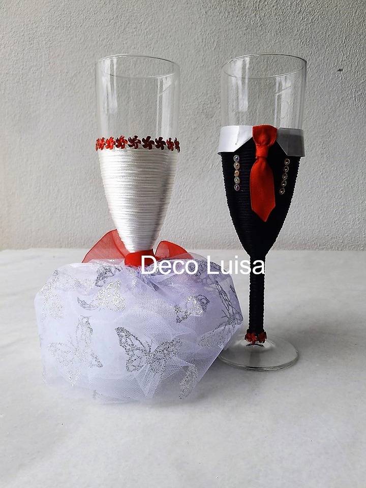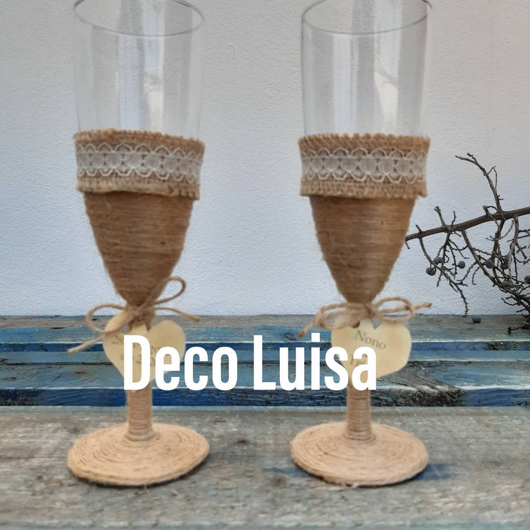 Otro regalo para la pareja de padrinos podría ser nuestras copas vestidas. Las presentamos en unas preciosas cajas de estilo vintage que se pueden personalizar con fotos y dedicatorias.