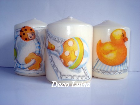 Velas decoradas con la técnica decoupage con motivos infantiles o con fotos de los bebés